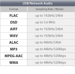 * Compatible con formatos de archivo WAV, FLAC y ALAC y desde USB/PC/NAS.