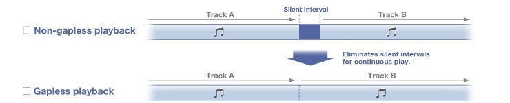 Muchos álbumes de música en directo y clásica no tienen pausas en la música. La reproducción continua garantiza la ausencia de pausas entre los archivos de audio y permite disfrutar de una reproducción sin interrupciones, es decir, con calidad original.