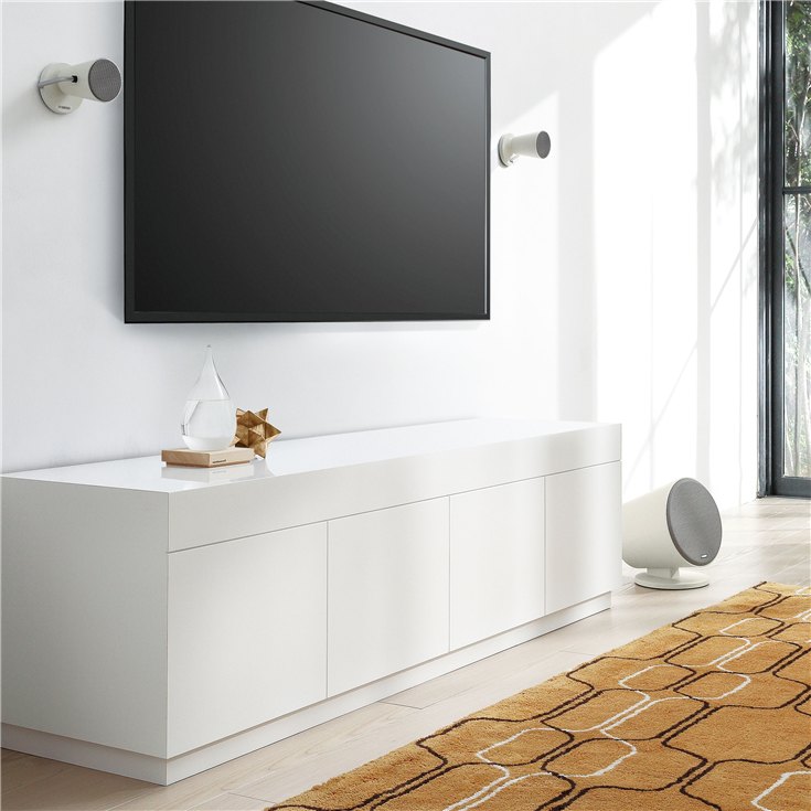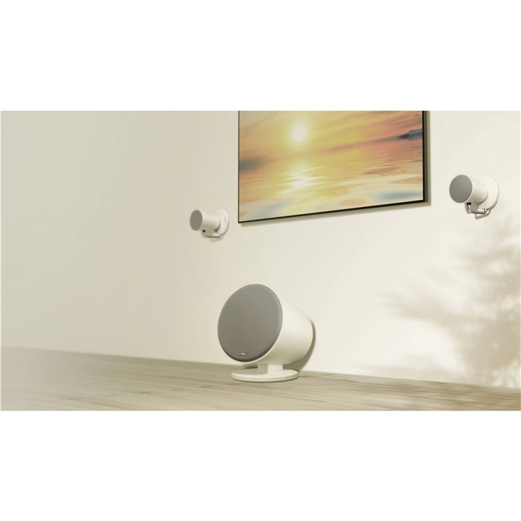 El NX-B150 parece un proyector de interior. La estructura de los altavoces satélite está formada por una hoja de metal prensado que ofrece un acabado liso y uniforme y su ángulo puede ajustarse en función de la posición del oyente para optimizar la experiencia auditiva. Totalmente ajustables y montables en la pared, estos altavoces pueden colocarse en cualquier lugar de la habitación, donde más le guste.
