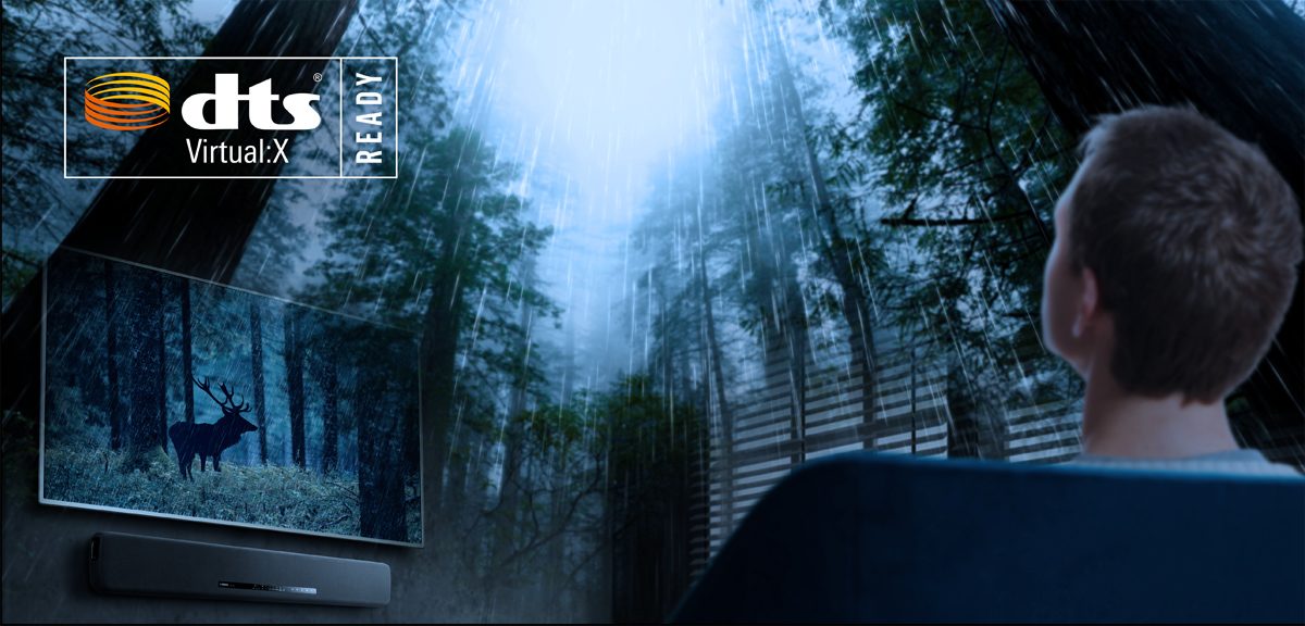 Un sonido surround 3D como nunca lo habías oído gracias a la compatibilidad con la tecnología DTS Virtual:X *. Sólo con este dispositivo, podrás disfrutar de un sonido que procede del techo, como el de la lluvia o de una nave espacial volando por encima de tu cabeza. Te envolverá el increíble sonido surround de tus películas, vídeos de conciertos y juegos favoritos, ¡como si estuvieras allí!